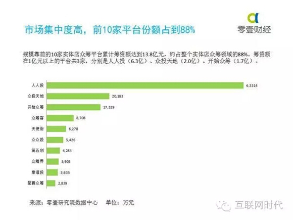截至2016年5月末,涉足实体店项目且正常运营的众筹平台至少有58家,累计筹资规模达到15.8亿元,76%资金流入餐饮住宿业。市场预估,随着互联网众筹的深入普及,会有更多的融资以众筹方式展开,若有3-5%的需求转换为以众筹方式融资,整个市场规模将会在千亿元级别。(数据来自零壹研究院数据中心)