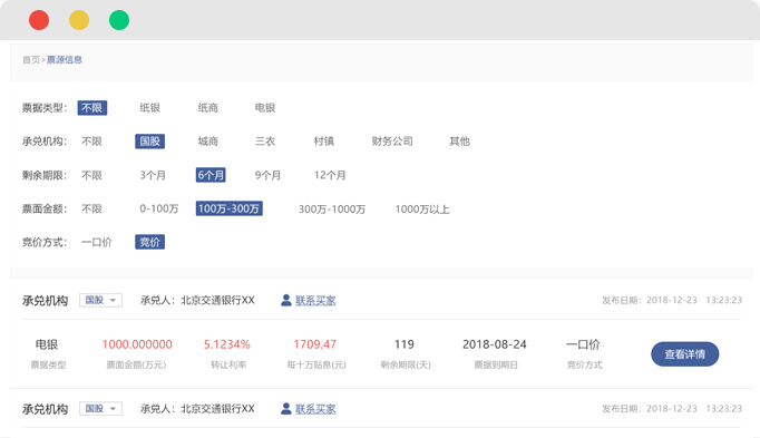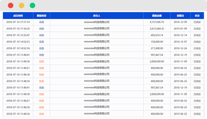 自动存储平台数据,如出票企业信息,票据信息,票据交易信息等多种信息,以便于票据溯源和监控。