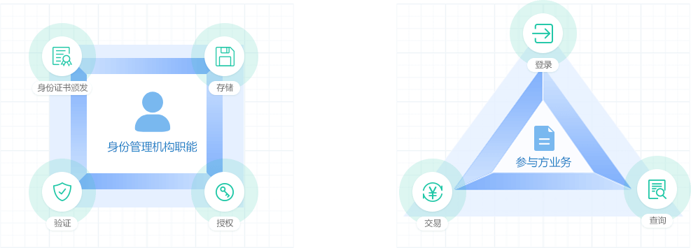 设置身份管理机构,负责参与方身份识别,设立了数字票据交易平台的参与方门槛,解决了传统交易平台上中介横行的困境。同时参与方在进行交易时,需参与方使用私钥进行认证与数据加密,用于保证用户隐私。