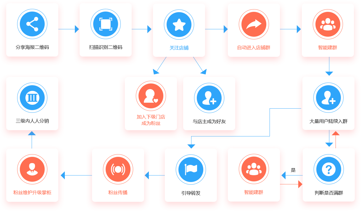 类似于消费、交易、充值储蓄的会员分销体系,在帮助平台推广,用户拉新拓客,营销转型及渠道融合等多方面都起着重要作用。对于传统行业来说,会员分销系统的作用就在于如何利用这个社交平台,帮助企业解决他们关心的口碑传播、流量销量、客户维护等一系列有价值的问题。